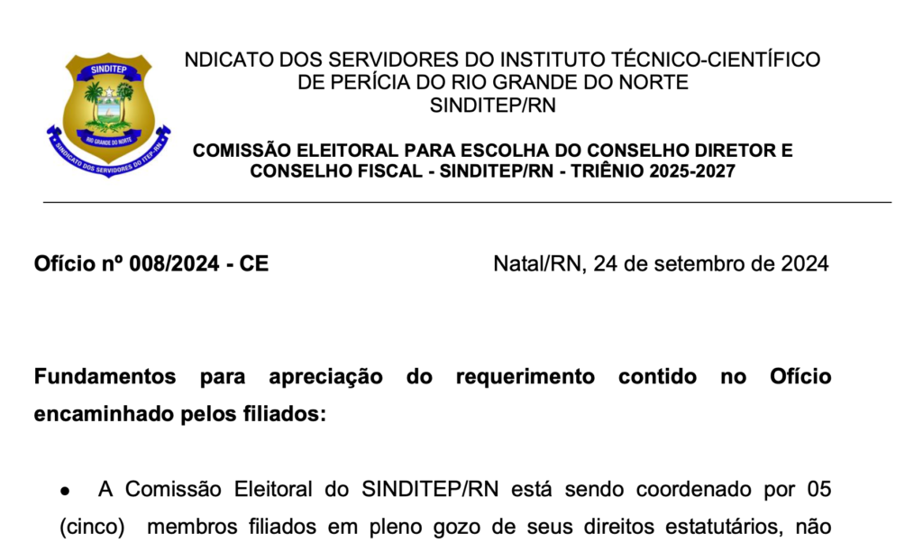 Comissão Eleitoral do SINDITEP/RN segue com cronograma das eleições para o triênio 2025-2027